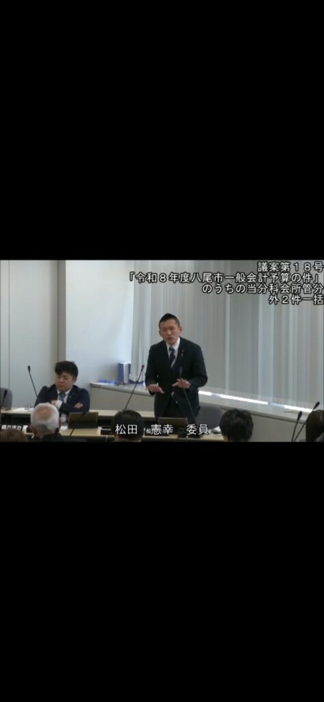 令和8年度の市政運営方針をはじめ条例案や予算案に対する代表質問、そして所属する文教委員会での予算分科会での質問が八尾市議会ホームページにて公開されていますので、是非ご視聴下さい。